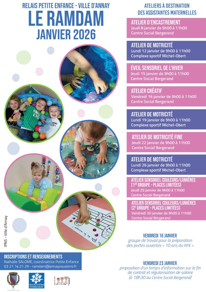 Mme Nathalie Salomé, coordinatrice petite enfance vous accueille au Centre social Bergerand, vous pouvez la joindre aux coordonnées suivantes : 03 21 14 21 29 ou par mail à ramdam@annaysouslens.fr